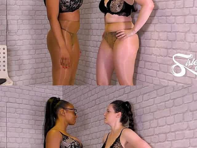 Hot lezzs in pantyhose again in action