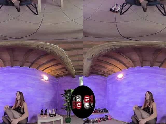Gorgeous Elettra Takes Off Her Black Pantyhose And Flaunts Her Sexy Feet - VRFootFetish