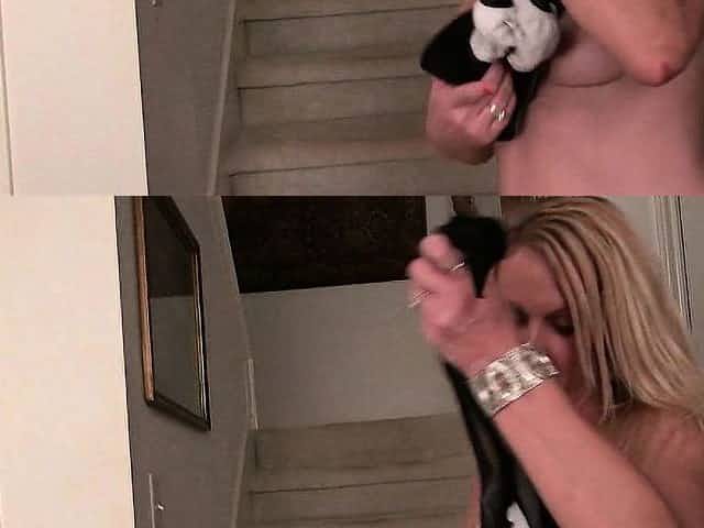 Blonde's hot solo show in pantyhose