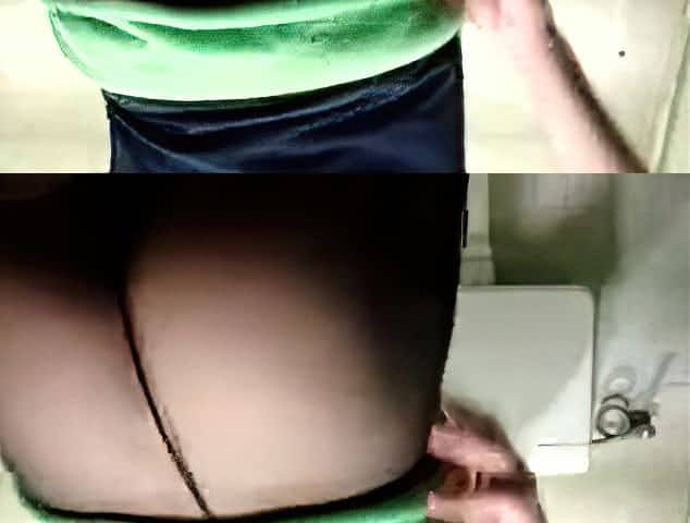 Black Pantyhose And Pink Panties And Green Mini Skirt