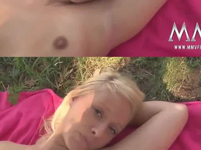 Naked sexy blonde girl in the park