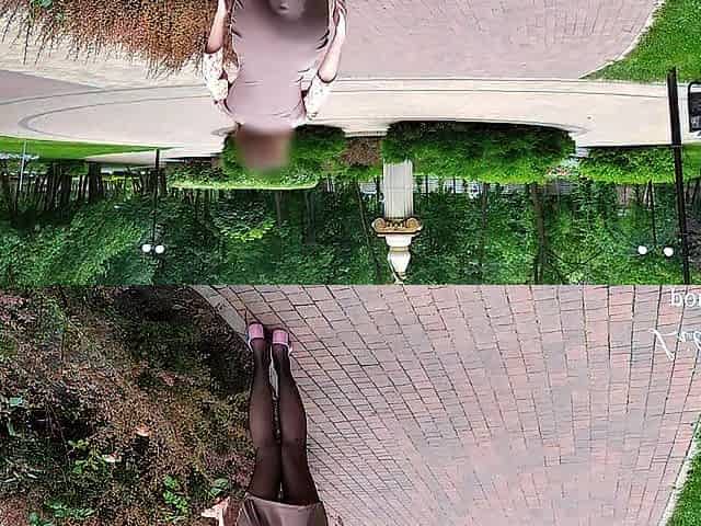 The Girl Topless Is Walking In The Park In Public