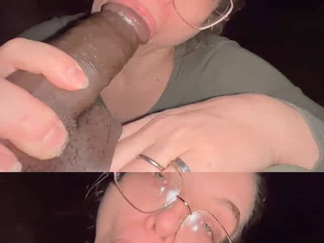 Glasses-wearing girl gives a risky public blowjob in the park for Realthrobonomy