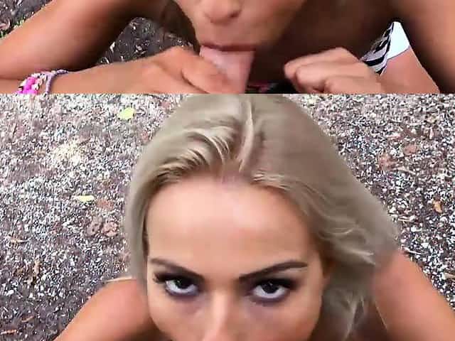 Blonde teen sucking big cock in public park