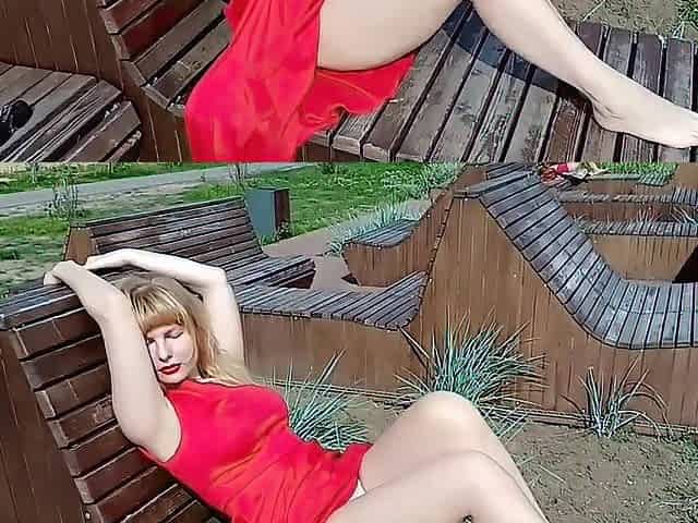 A spy in the park on a marvelous honey in red, mmm strings go aside...