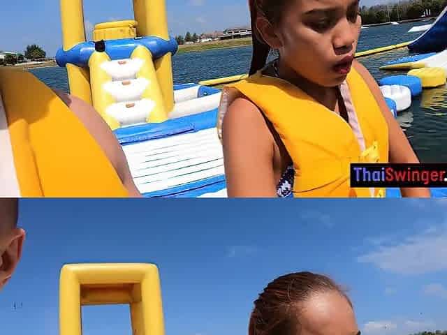 Thai girlfriend enjoys the water park and then her boyfriends big cock at home