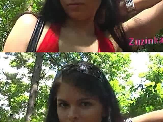 Pick up of brunette Angelica in the park