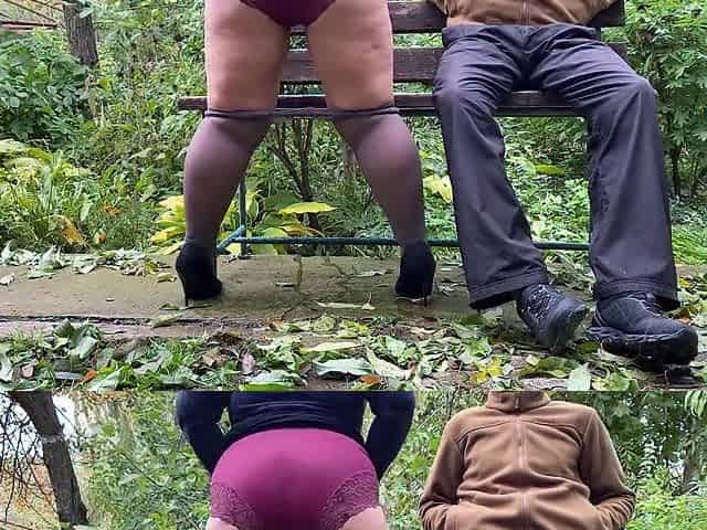 Mother-in-law Receives Golden Shower in the Park on Her Bare Legs