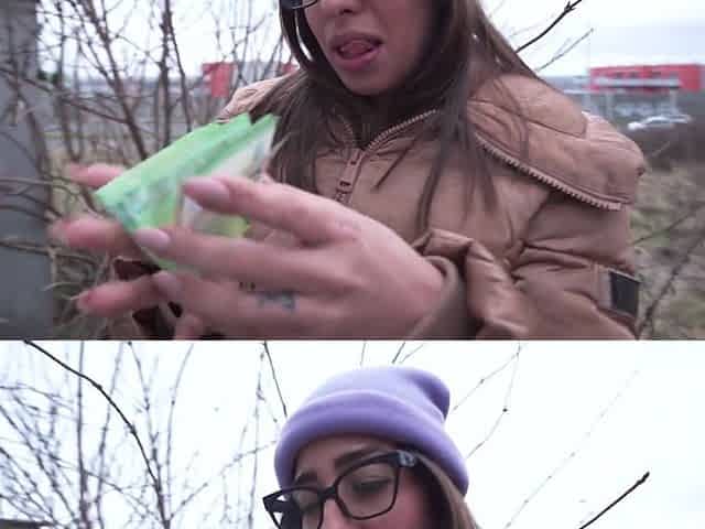 Two Cute Girls Eating In The Park, Littering And Peeing In Front Of Everyone