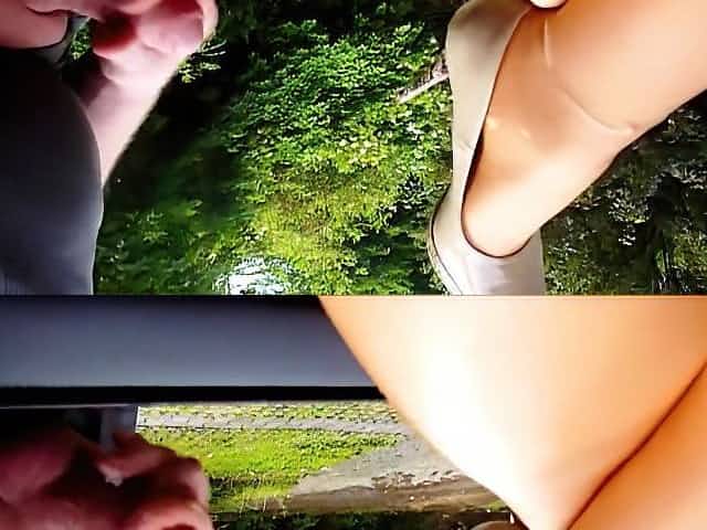 Footjob - outdoor auf Parkplatz - Sperma Heels und Nylons