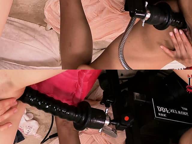 It's a fun machine fuck party for two hot brunette lesbian gals