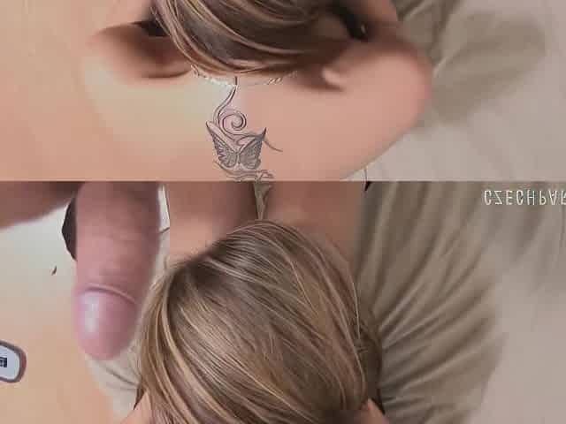 Tattooed slutty wife blowing giant dick at swinger party
