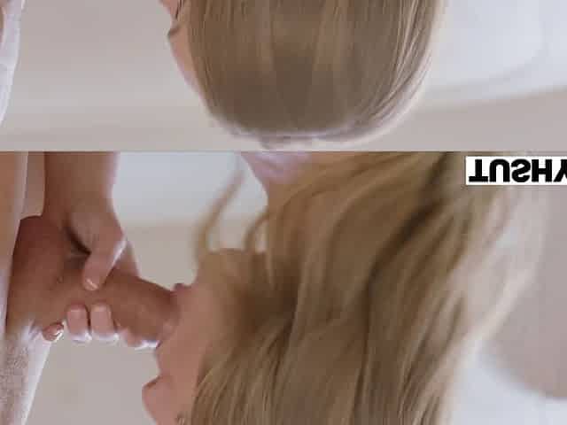 Busty Angela White is playing with dude's dick in POV