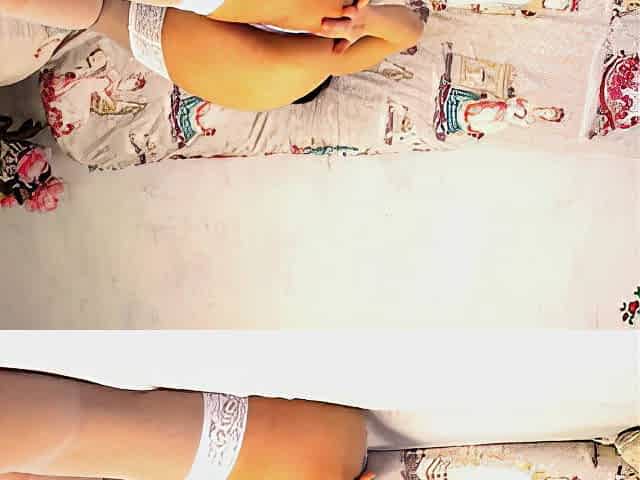Cute Bitch In White Stockings Fondles Tight Vagina With Blac