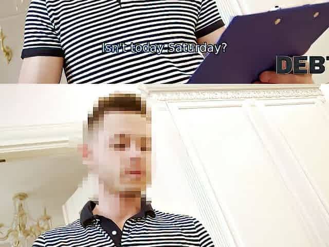 DEBT4k. Youthful debtor pays for debts using delicate throat