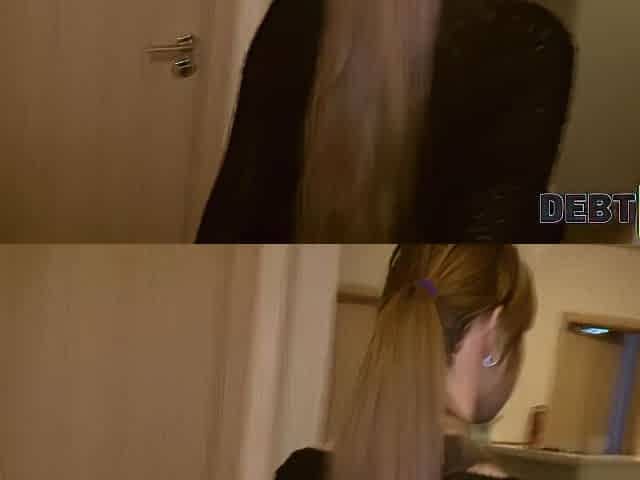 "DEBT4k. Blonde hairdresser has to satisfy sexual needs of collector"