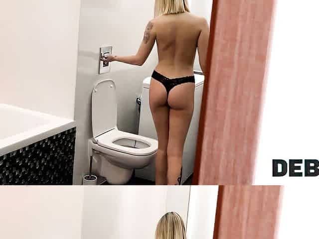 DEBT4k. Long-haired blonde with awesome body has sex