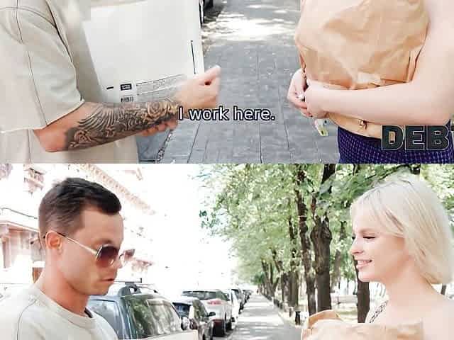 "DEBT4k. Jobless hottie tricked into unplanned sex with the collector"