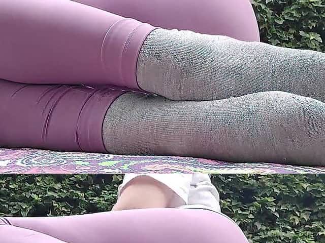 Brawny mother I'd like to fuck in leggings helped pee outside