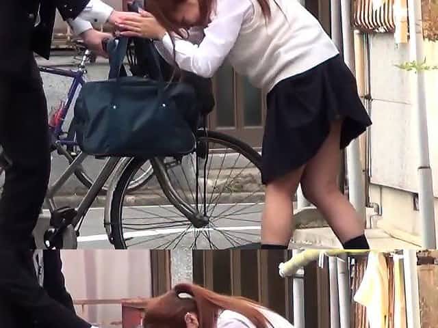 Japanese teen students peeing outside