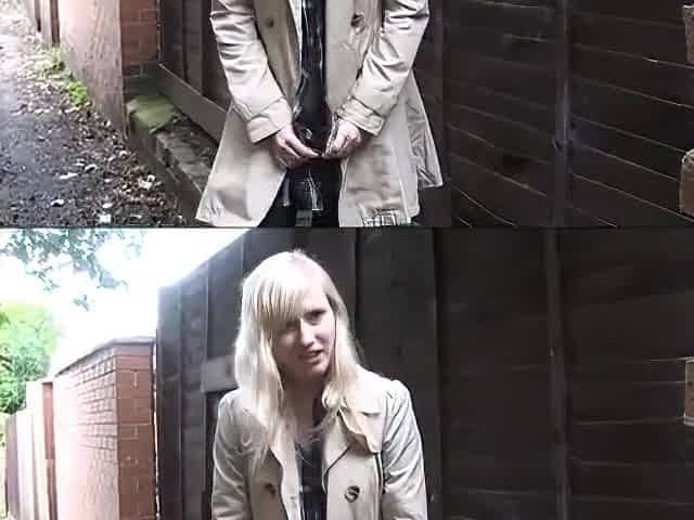 blonde girl peeing in public