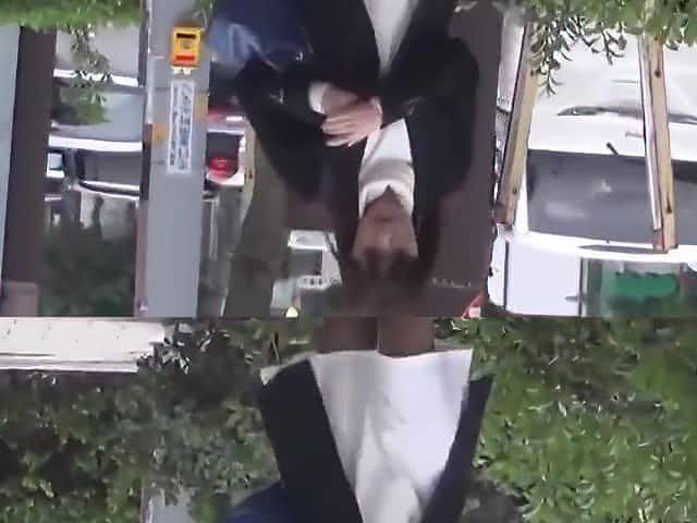 A black haired teeny lady realizes that a voyeur is filming her during pissing