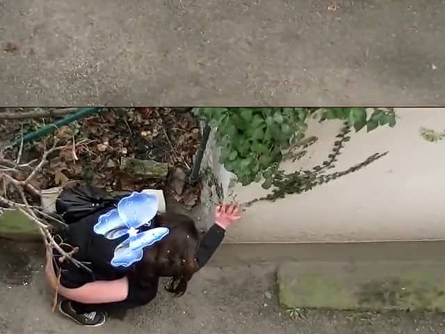Nasty brunette babe peeing in public in front of voyeur