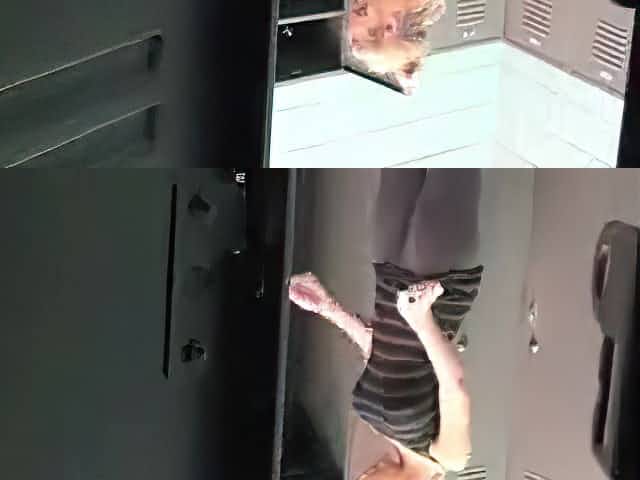 Fitness girl with fake tits in locker room