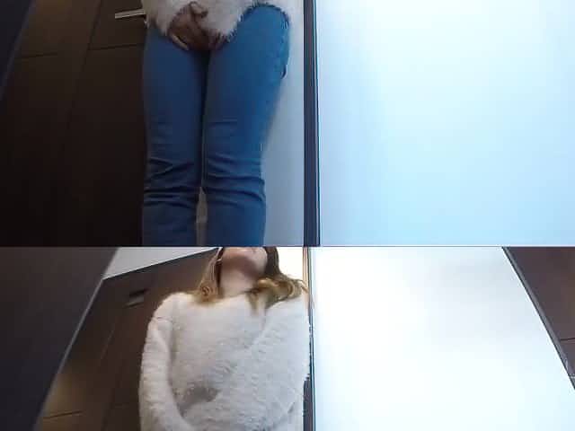 Japanese girl pees her pants after trying to hold it