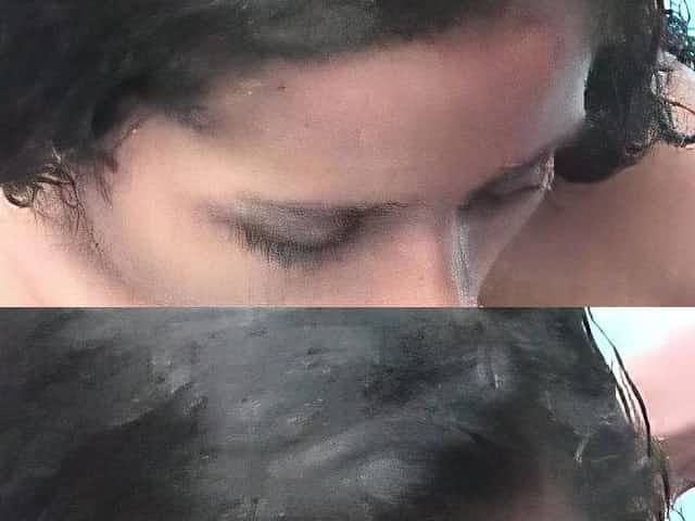 Long haired broad masturbating while a peeping tom filming!
