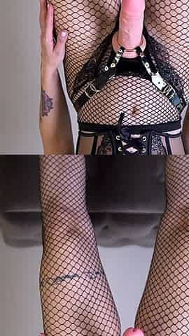 Inked strapon femdom asks incel to bend
