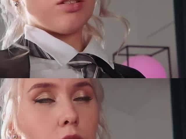 Blonde slave suck and fuck two strap ons