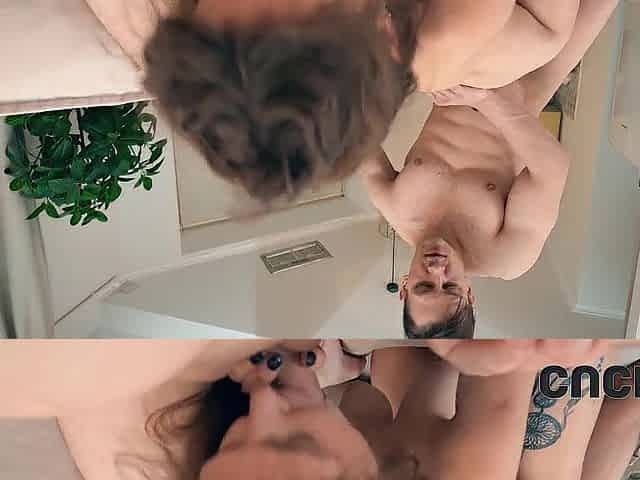 Wife tries 1st large knob in shower with spouse