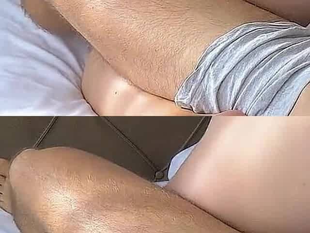 Close-up on intimate parts of amateur lovers while they are slammed together