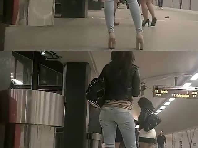 Perfect girl in high heels waits for train