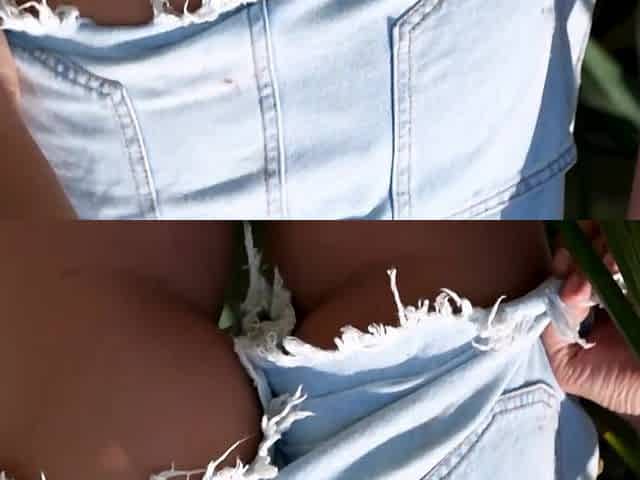 Sweet small tits brunette MILF posing outdoor but totally naked and sexy