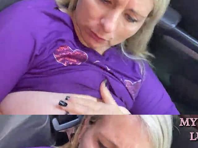 Busty chick's back seat blowjob