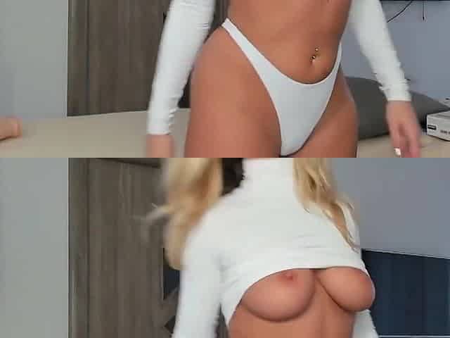 short blond haired girl showing off her sexy body