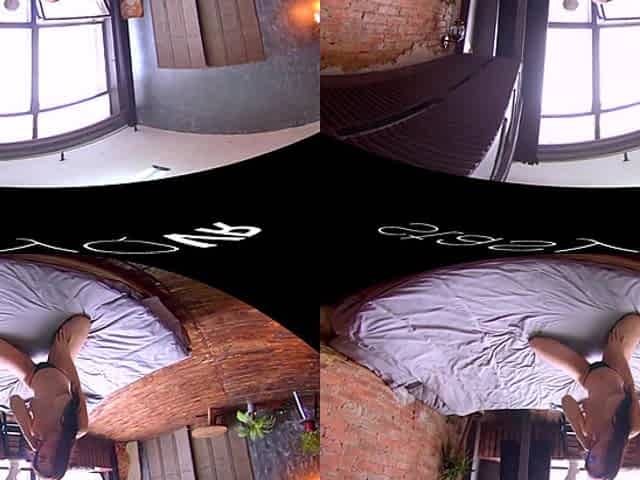 ForyQ exposing her perky tits and moist pussy in VR
