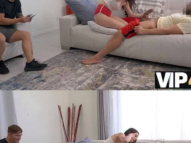 Talia Mint is playing with her wet cunt on the sofa