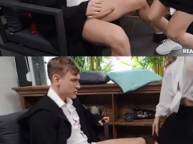 My stepbrother's perverted friend sniffs my thong and gives me in the ass - PissVids