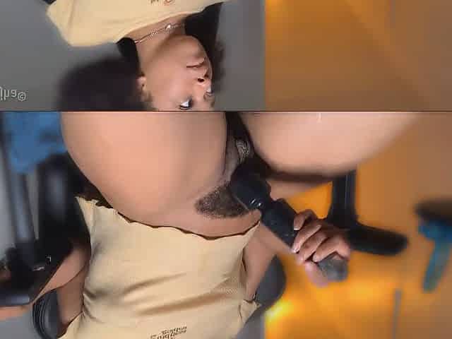 Large ass Amateur Black banging sex toy at work in the break room