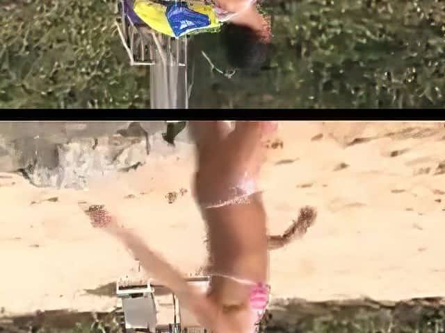 Nude beach - college girl photo shoot pee