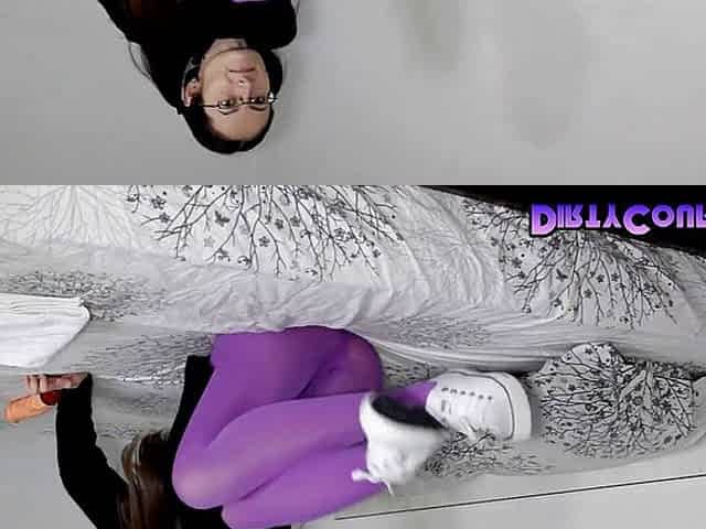 Pantyhose photoshooting in plum pantyhose and converse