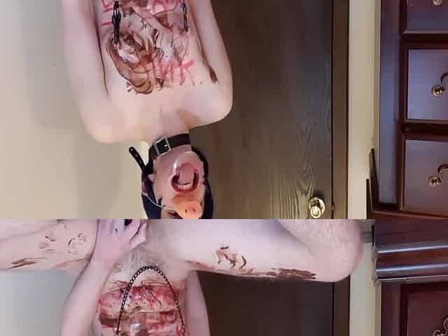 Filthy Cam Pig Playing In Chocolate Pudding