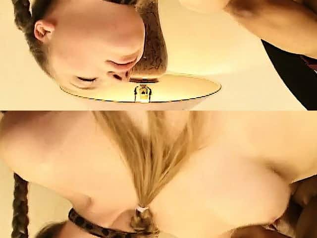 Pigtailed blonde with big boobs surrenders her pussy to a black bull