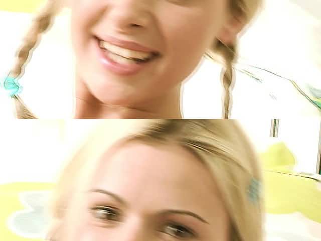 Dazzling blonde teeny with pigtails works her sexy lips on a long dick
