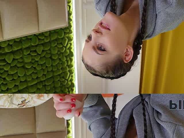 The Flatmate-girl Doesnt Mind Periodic Fucking In The Kitchen And Gets Cum In Her Mouth And On Her Pigtails