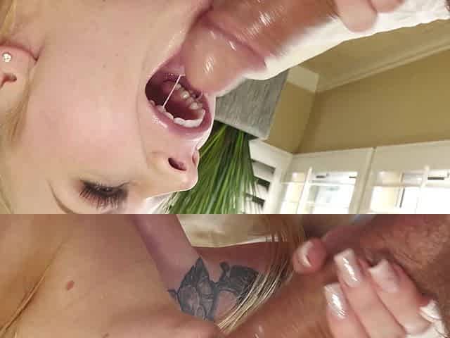 Pigtailed blonde Euro slut is deepthroating in POV