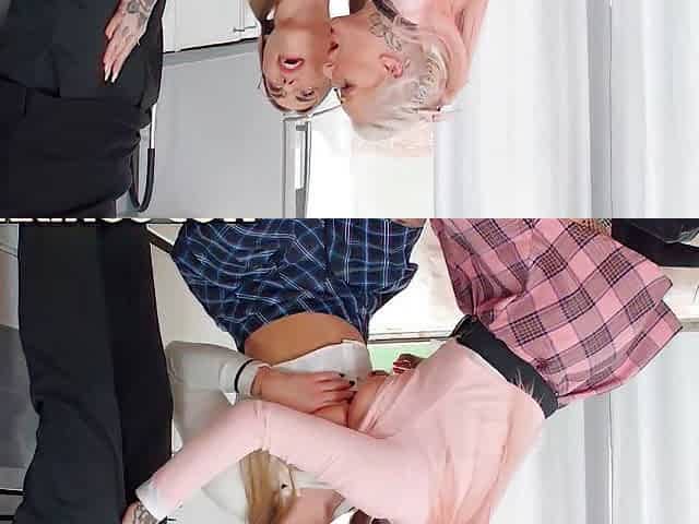 Cuties Russian Scene-2 slim Blonde Russa in Pigtails Fucking with Mature Friend